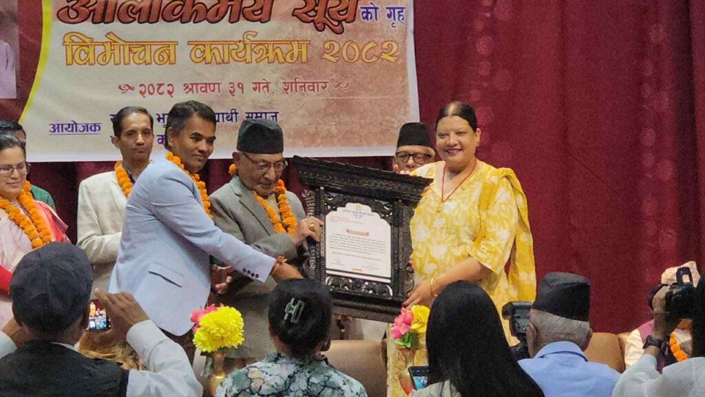 काभ्रे । साहित्यिक सिर्जना, साहित्य अभियान, पत्रकारिता र संस्कृतिका क्षेत्रमा समर्पित साहित्यकार सूर्यप्रसाद लाकोेजुको व्यक्तित्व र कृतित्व समेटिएको वृहत ग्रन्थ ‘आलोकमय सूर्यको एक भव्य समारोहका बीच गृह विमोचन गरिएको छ । सो ग्रन्थको संस्कृति शिरोमणि हरिराम जोशीले विमोचन गर्दै सूर्यप्रसाद लाकोेजुलाई साहित्यिक ‘सूर्य’को उपमा दिंदै लाकोेजु असाधारण प्रतिभाका धनी व्यक्तित्व भएको बताए । मातृभूमिप्रति उनले गरेको समर्पण अतुलनीय रहेको पनि उनले बताए । साथै सूर्यको साहित्यिक उज्यालो नेपालको भूगोलभन्दा परसम्म फैलिएको बताए ।